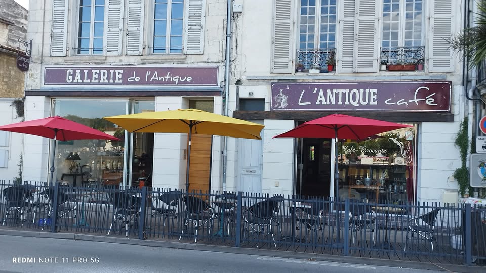 L'Antique Café est un établissement unique qui allie avec succès deux activités passionnantes : le café et la brocante-antiquités. Situé en plein cœur de la ville de Saintes, avec une vue imprenable sur la Charente et l'Arc de Germanicus, ce lieu atypique offre une expérience chaleureuse et authentique aux visiteurs. Sous la direction de Patrick et Claire, l'Antique Café vous accueille dans une ambiance d'autrefois, où vous pourrez déguster de délicieuses boissons tout en flânant parmi une collection éclectique d'objets de décoration, de meubles et de luminaires vintage.